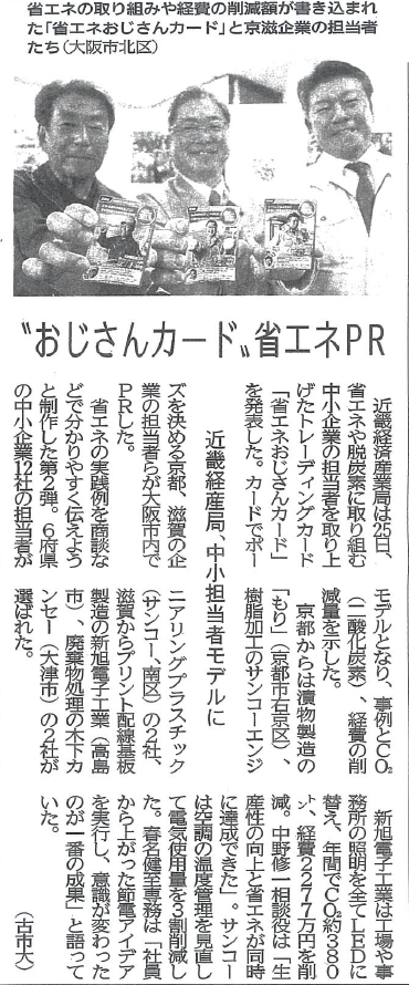 近畿経済産業局の省エネ・脱炭素への取り組み機運を高めるために作られたトレーディングカードの紹介記事に掲載されました。